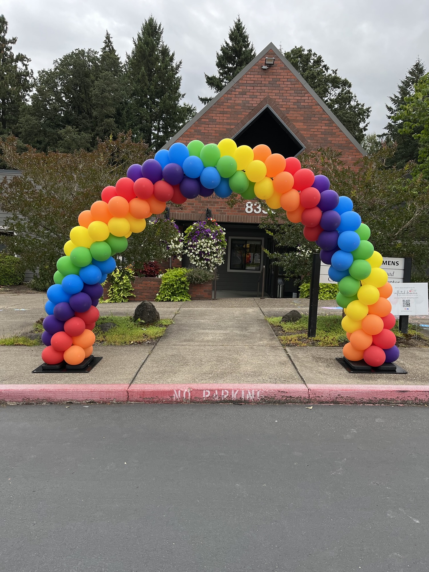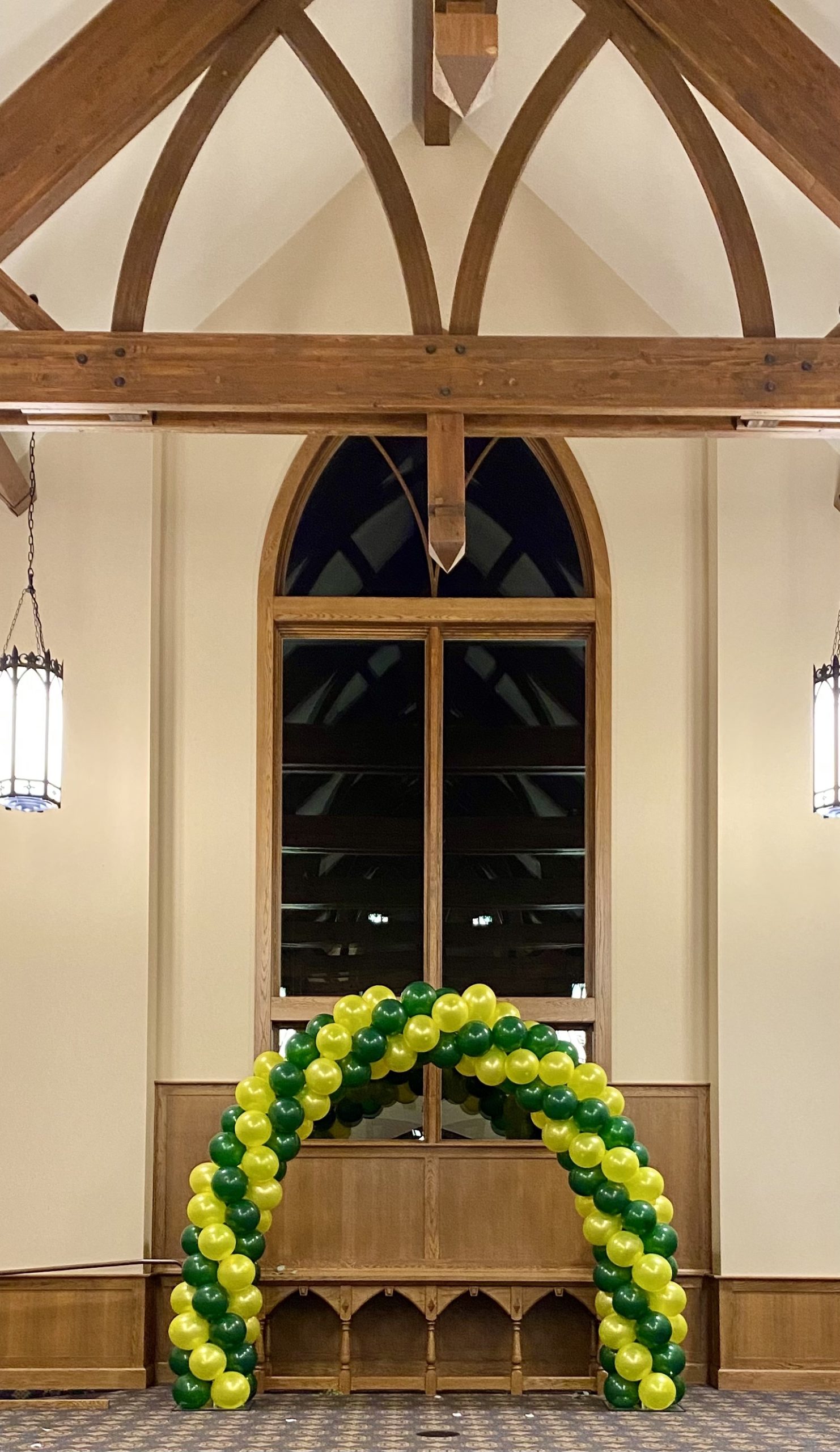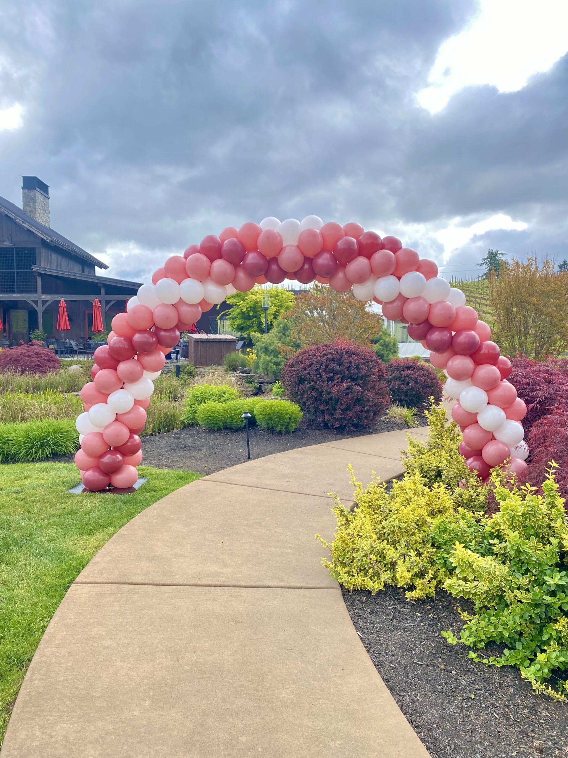 Our small balloon arch is about 8 feet wide by about 8 feet tall! It’s perfect for small walkways or as a photo backdrop.