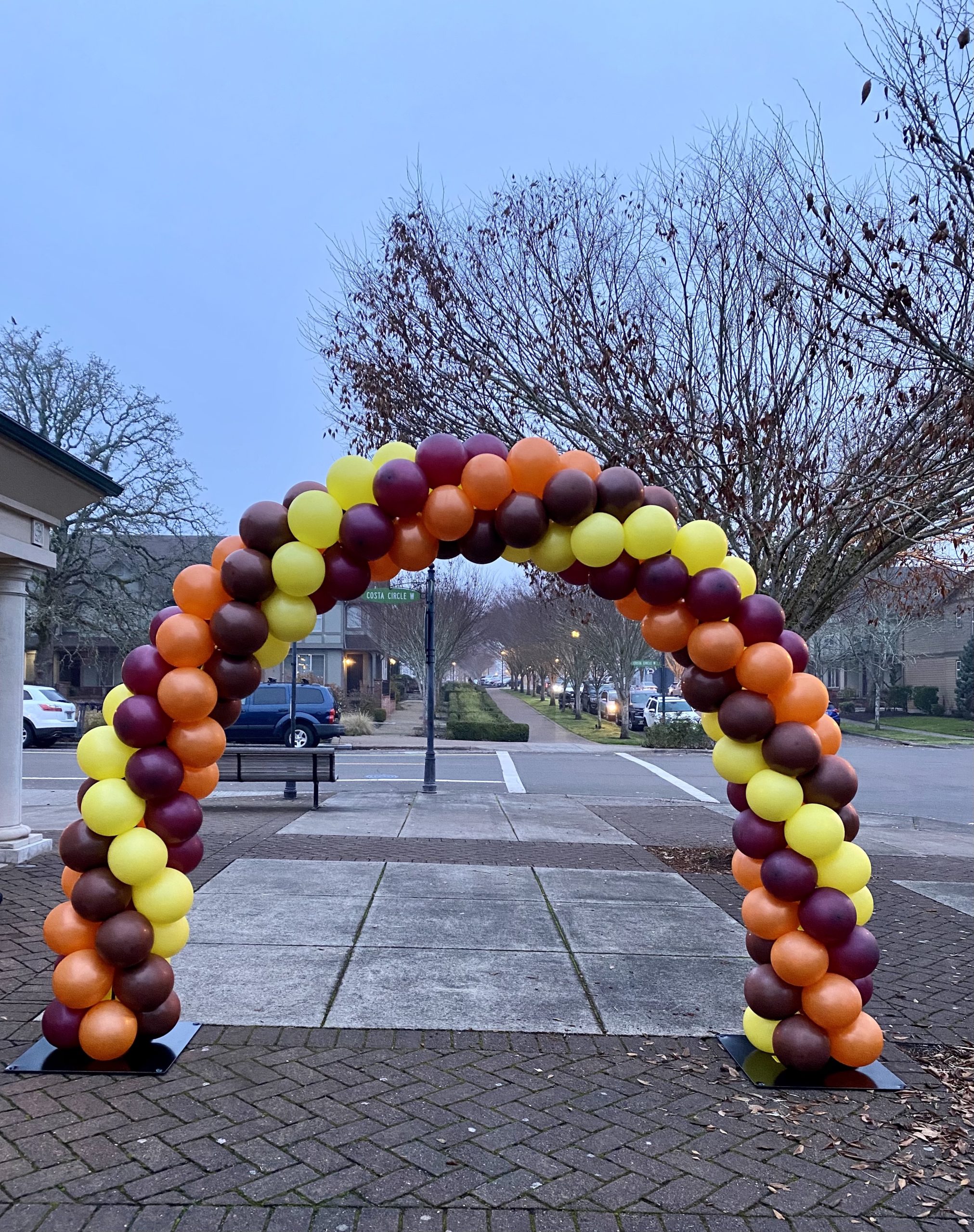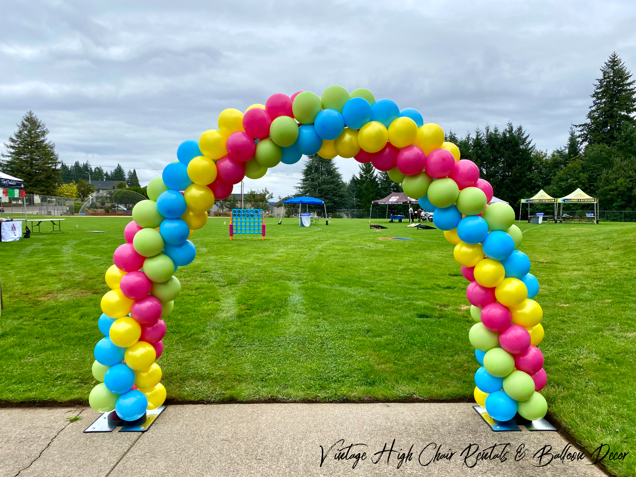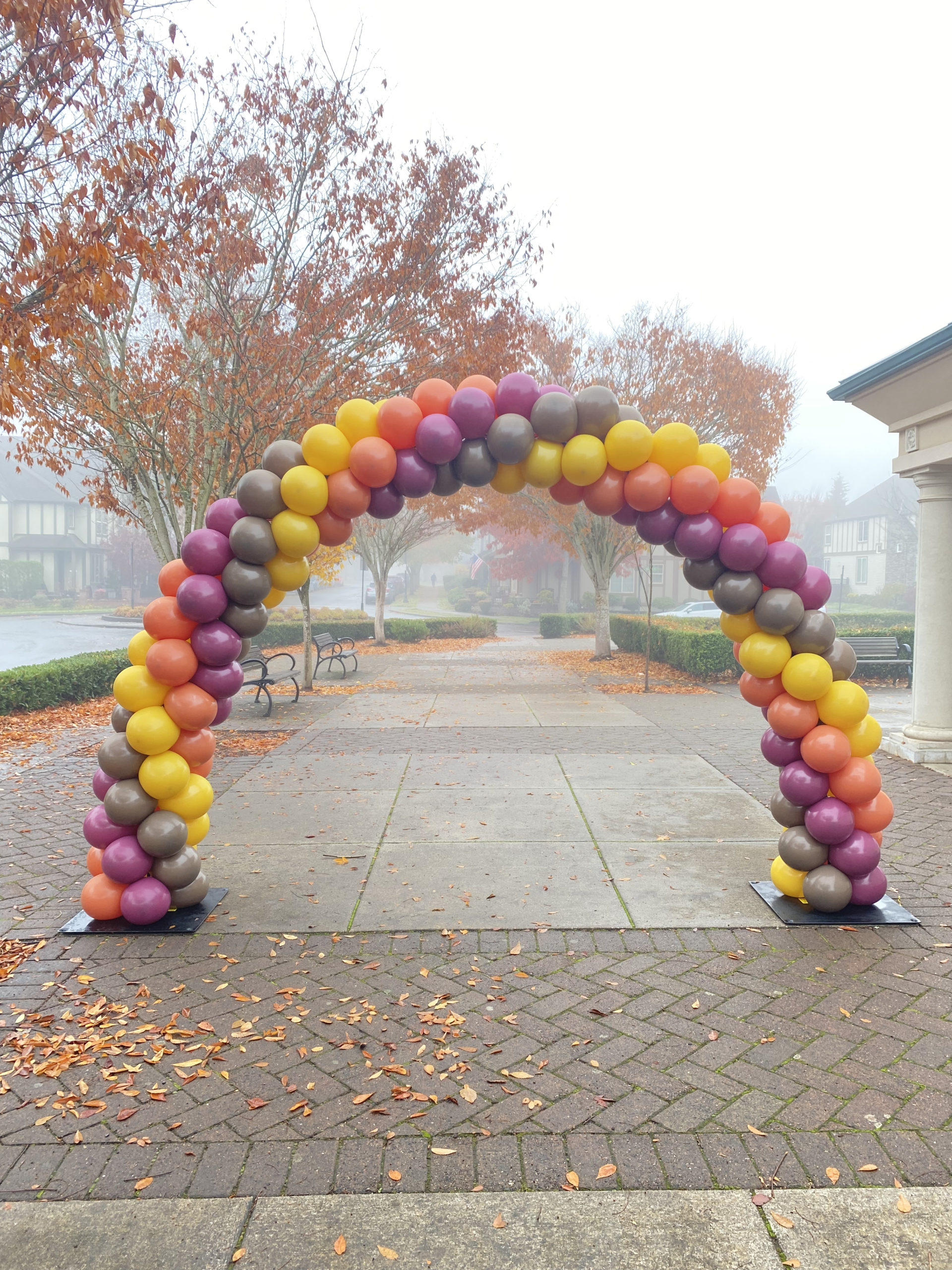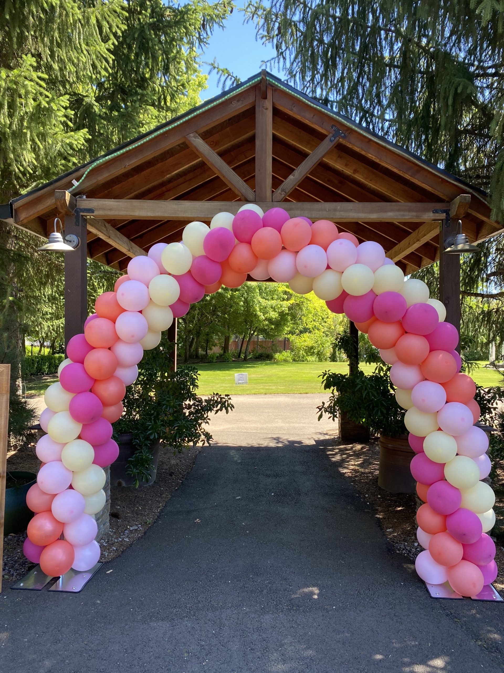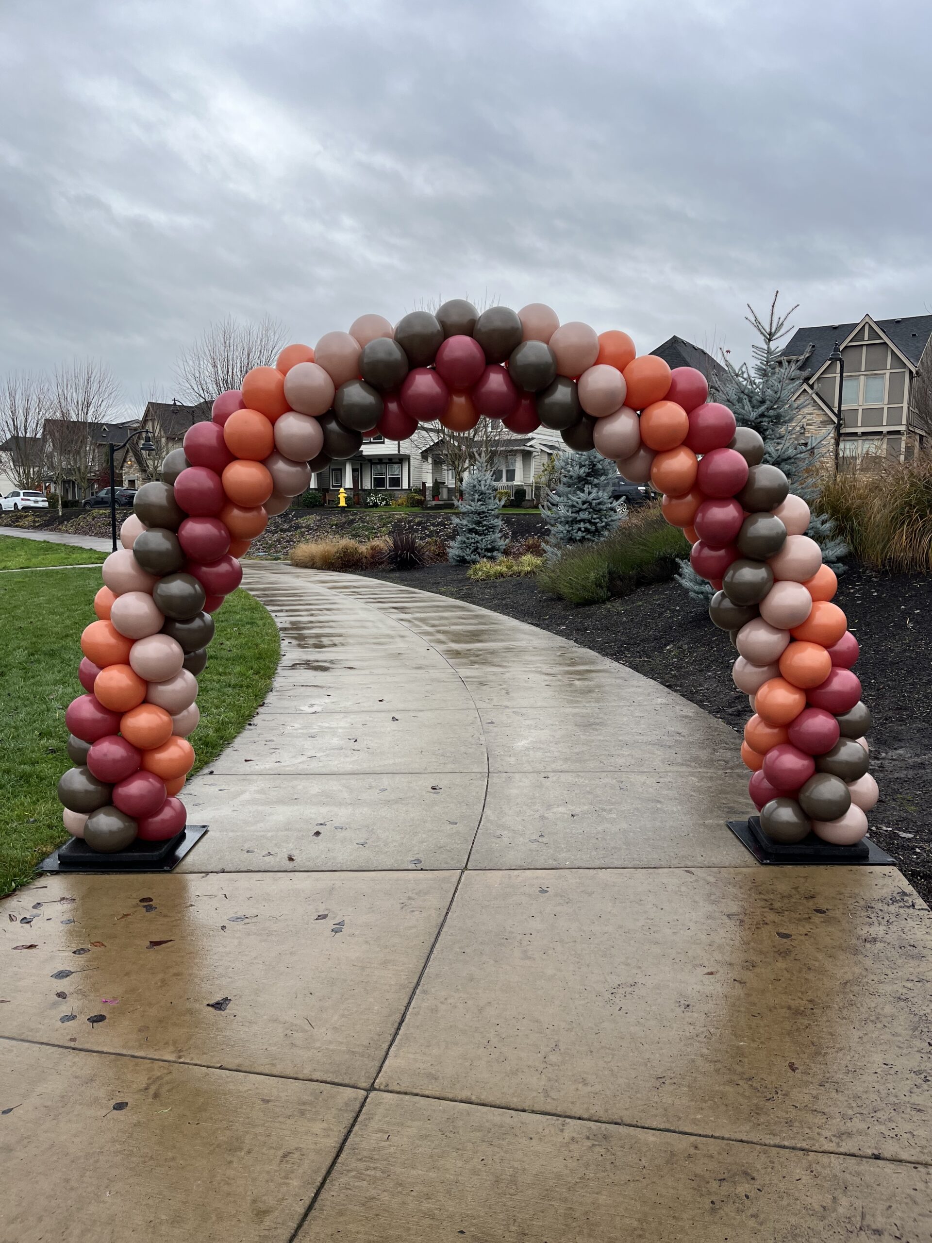 We offer our arch in two different styles: Traditional or Organic. Traditional spiral or color block arches include one size balloon of varying colors for a clean and crisp look. For a spiral pattern you may choose up to 4 colors. Organic arches are fun and whimsical and include multiple size balloons.